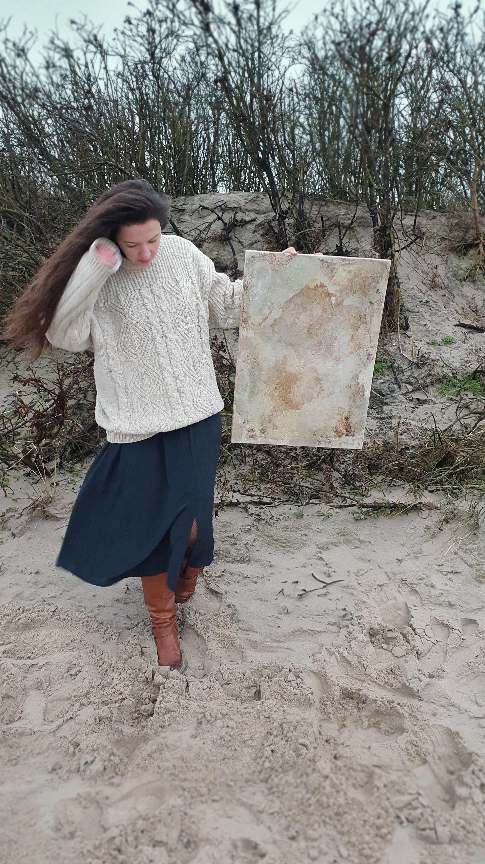 Mischtechnik mit Kaffeesatz auf Leinwand